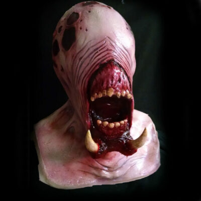 High quality latex mask. Attention to detail is, as always, a point of pride for us. This mask shows it! Right down to the teeth and eyes… er… eye … it’s just creepy and looks gooey. In a good way.