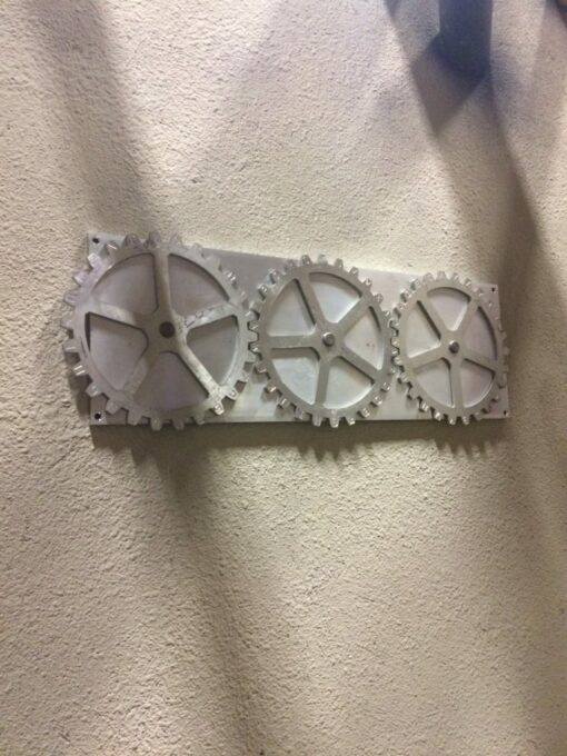 Built to encode and decode message, but on a LARGE scale. This assembly is 36″ long, and the gears are each 13″ in diamater. The base is 1/2″ thick aluminum with holes to mount, and the gears are all waterjet cut from 1/4″ aluminum plate, and CNC engraved.